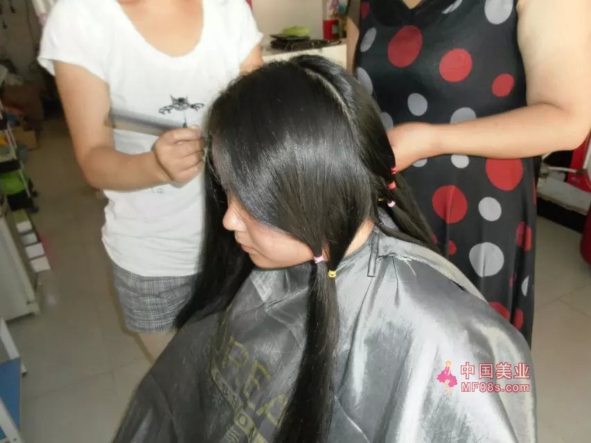 两个长发姑娘剪头发