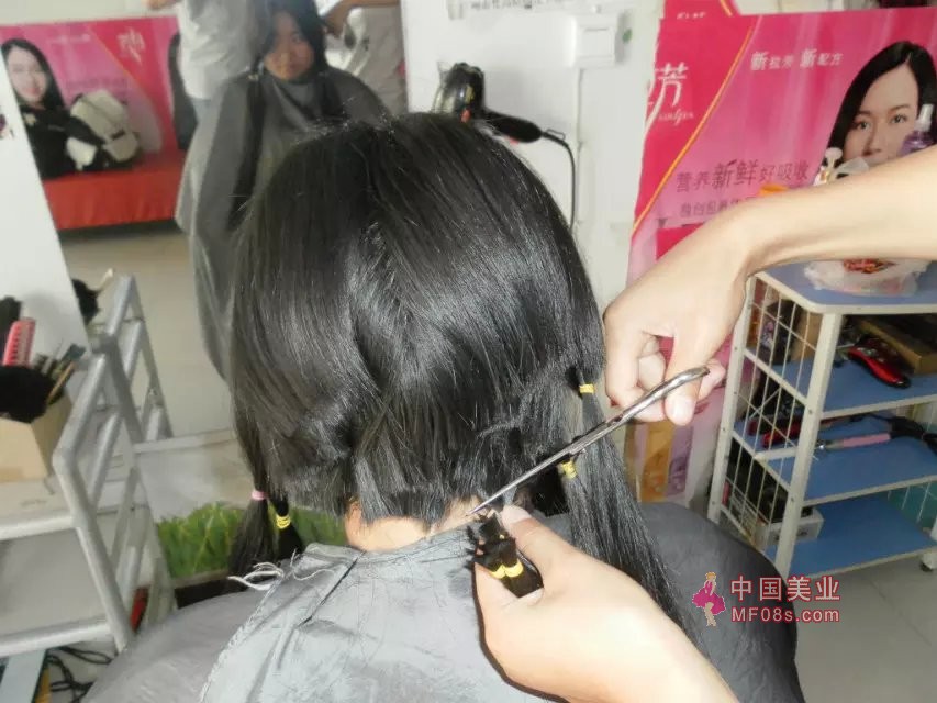两个长发姑娘剪头发
