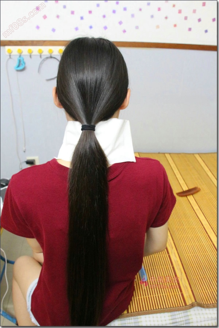 小床上剪去红衣女子过腰秀发-发之美305#(45)