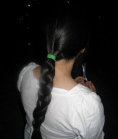 剪下特乌黑柔亮的长发