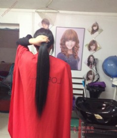 餐桌旁直接剪下1.3米顺直长发