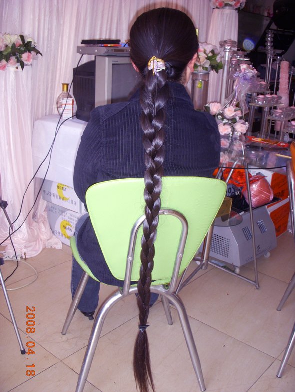 今天婚庆公司的朋友来电要我去剪发,到那里竟然没想到是姑娘不仅漂亮而且辫子又那么长那么亮丽,真是好马尾辫。
