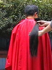 视频:帮长发女剪头发