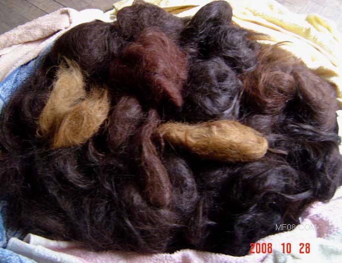 所以这些头发要求质量好,基本没有短发屑等,是原味清洁发,发质全选年轻姑娘的好发质,这里选留了一、二十个姑娘的好发,搓成发团,有姑娘的各种颜色发,重900克,决定上网发售.有兴趣的朋友请来电。