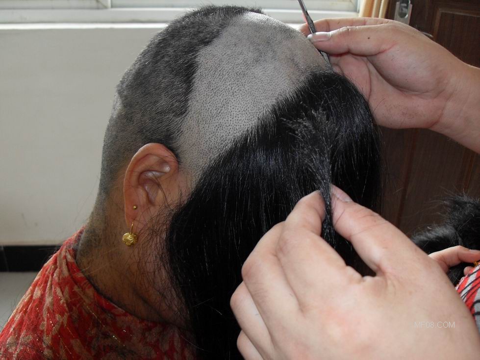 高贵少妇忍痛剃下9两重靓发成光头(10)