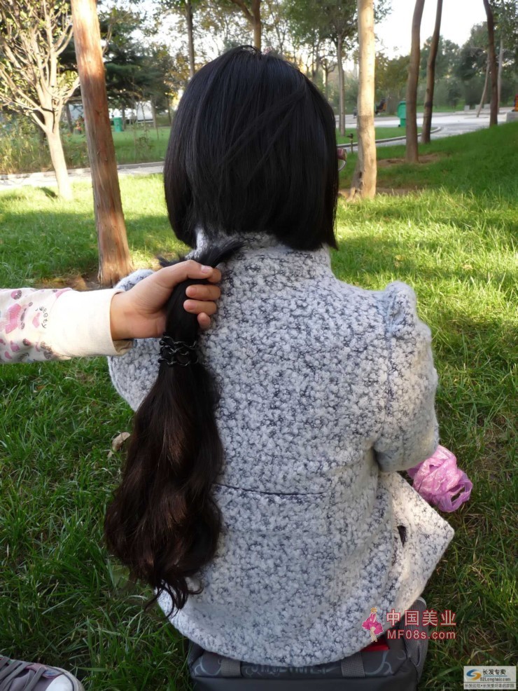 上午接到的电话,下午去一个公园等女孩的!见到后是一个BOBO头的高挑女孩,很好奇!问她长发女孩呢,她让我先坐下谈!后来从包里拿出一把头发说卖给我!我说我只要当面剪下的,自己剪下的不要!死活不要就打算走,最终架不住美女撒娇,还是要了!并且价位给的挺高!哎,英雄难过美人关啊!!!后来问美女才得知,前天和男友吵架闹分手!一气之下剪下长发!真把我给惊着了,第一次遇见这样的!还好头发相当丰厚,足有普通人的两倍那么多,而且上下均匀!几个月前头发有烫过,下面是卷发!回去测量了一下,50厘米出头,但是重量差不多有半斤了!比我之前剪过的70厘米的头发还重60克!女孩身材很高挑,身高足有175厘米,可以说是模特级身材!也非常漂亮有气质,而且也很配合的拍了一些照片!此方式收的头发仅此一会!需要的赶紧联系: