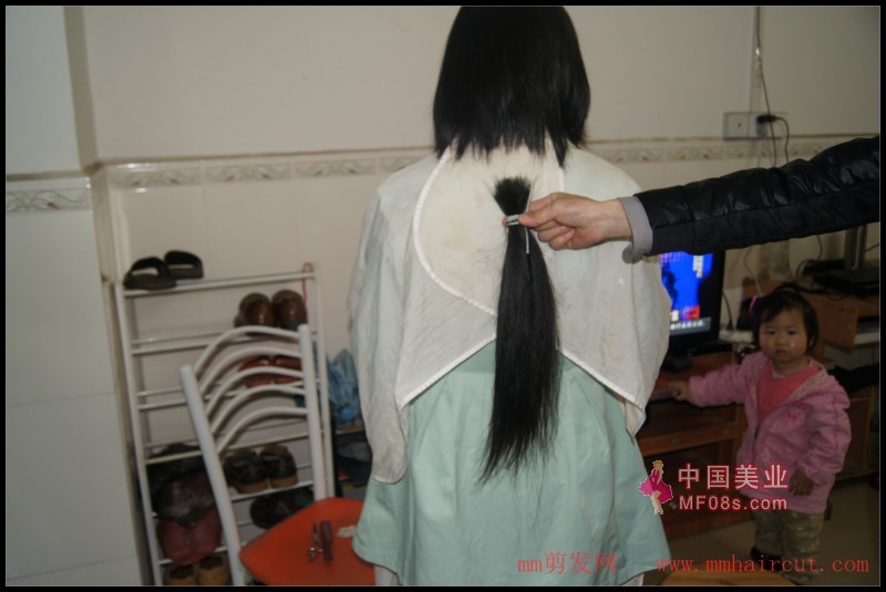 一刀剪下深圳李小姐42公分黑直发,深圳mm206号(6)