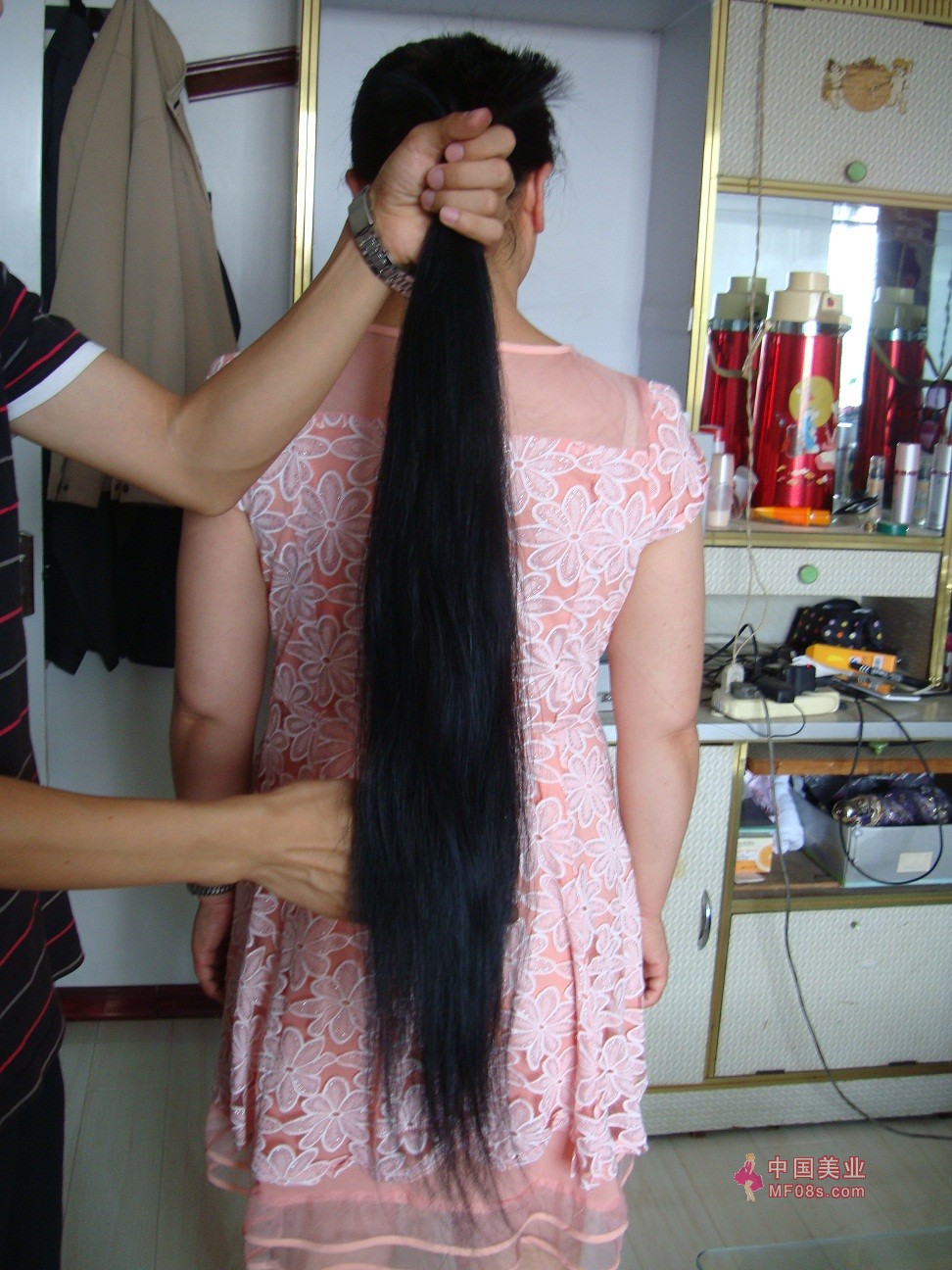 餐桌旁直接剪下1.3米顺直长发