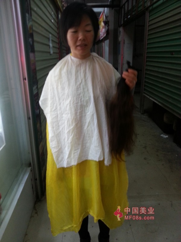 采用抽剪法剪下少妇95厘米粗顺湿发-深圳