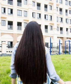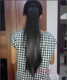 妹子自己剪下的过臀长