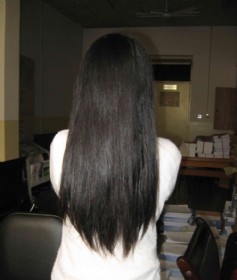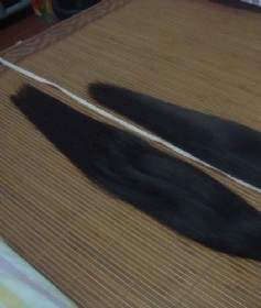 长发很顺,很滑,我叫朋友做了护理,拉了直板,然后再剪的!长度是 60厘米 55 厘米。这二支长发,是我从理发店买的,我朋友在艺校门口开理发店,前几天我去理发,有2个大学生,说想卖长发,因为放假了,想打扮一下回家搞得靓丽一点!二支要1000块……(2011-06-26)