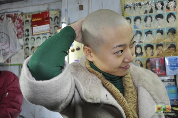 柔顺的长发女孩剃光头
