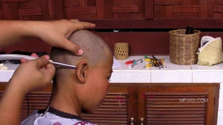 MM躺着享受剃光头