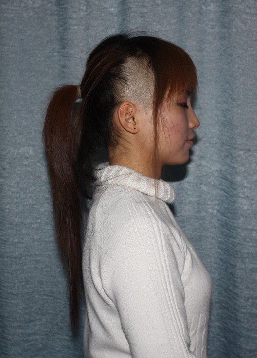 邮政大学女孩漂亮彩发扎马尾直接剃光(14)
