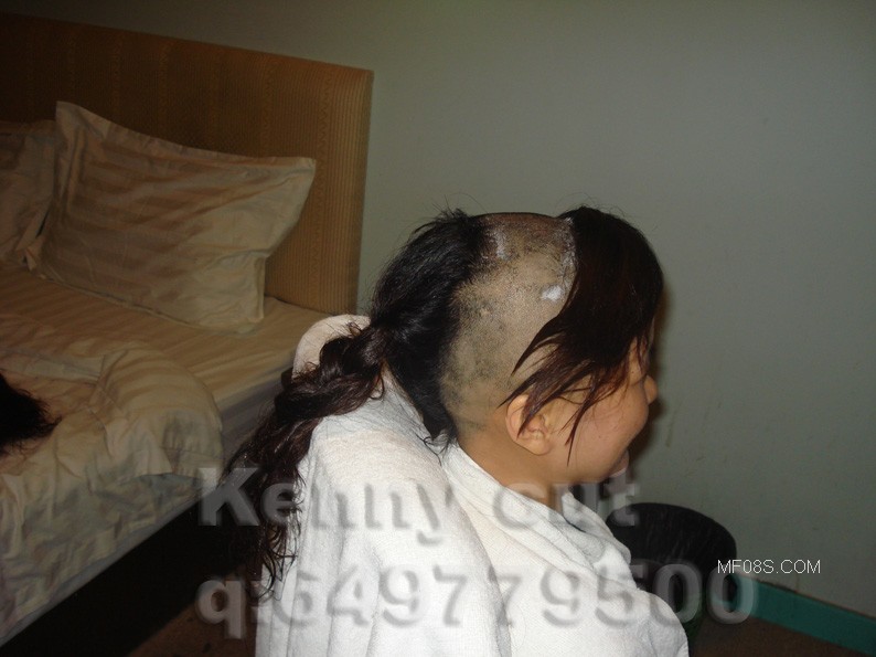 漂亮MM剃光头 剃眉毛