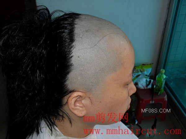 浓密的秀发妹全剃光