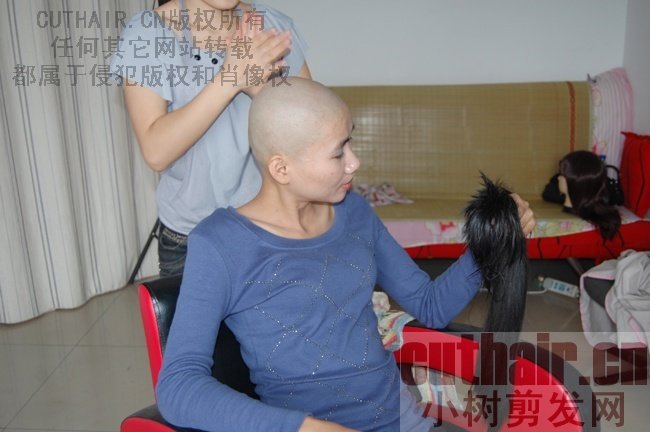 年轻小妹剃光头