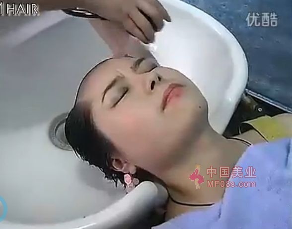 在发廊洗发的长发女
