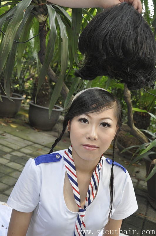姑娘披肩长发剃成板寸-深度007#