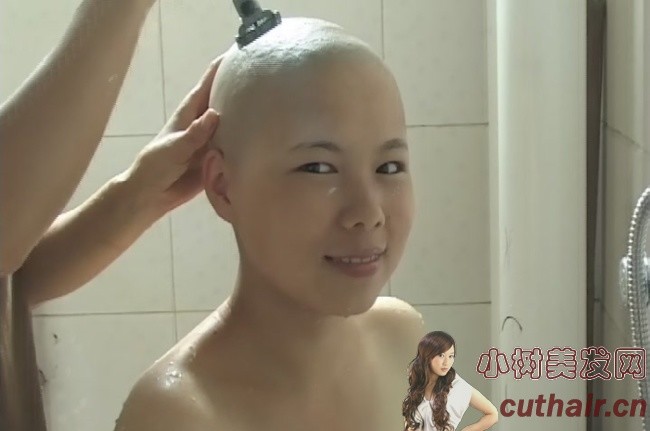 给漂亮女孩推光头