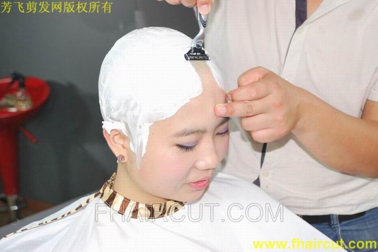 年轻的美女剃光头剃眉毛