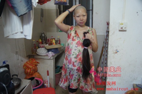 长发妹剃光一头披发