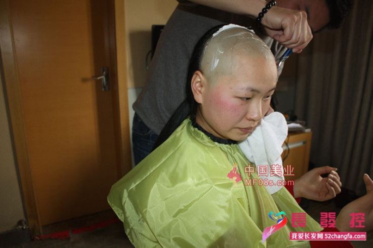 长发美女感受剃光头的美妙