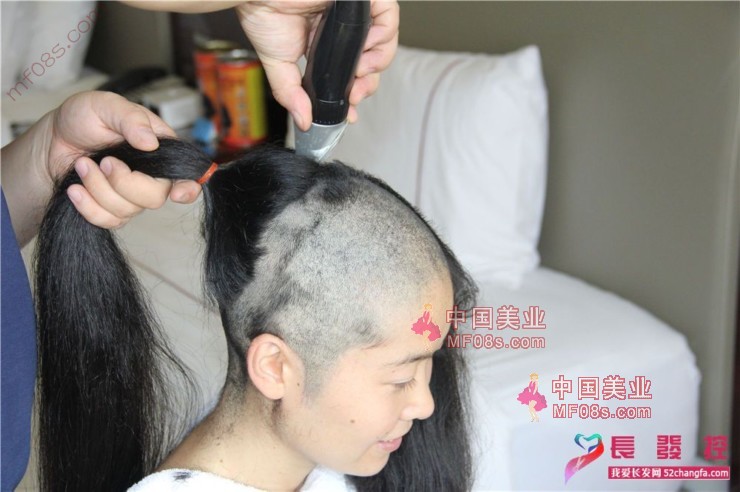 丰厚长发女孩剃光头
