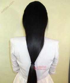 女人的头发已经剃,3面剃光,一直到上,顶上设计个阳性头,凉快极了,剃下发长70公分,垂直亮丽,比较丰厚的头发,顺滑而自然黑色,视频正在制作中,头发对外发售。