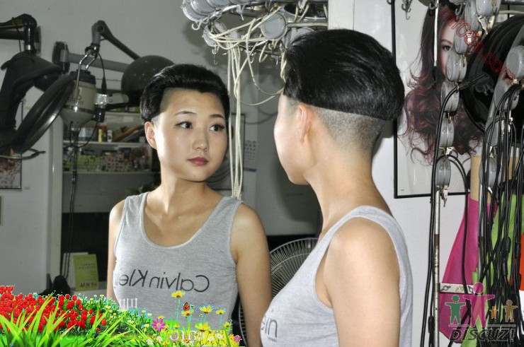 漂亮长发美女剃光头