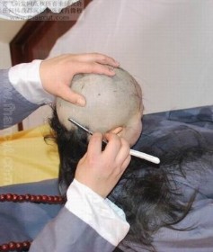 姑娘尝试光头剃度之法