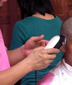 白衣女孩剃光头过程