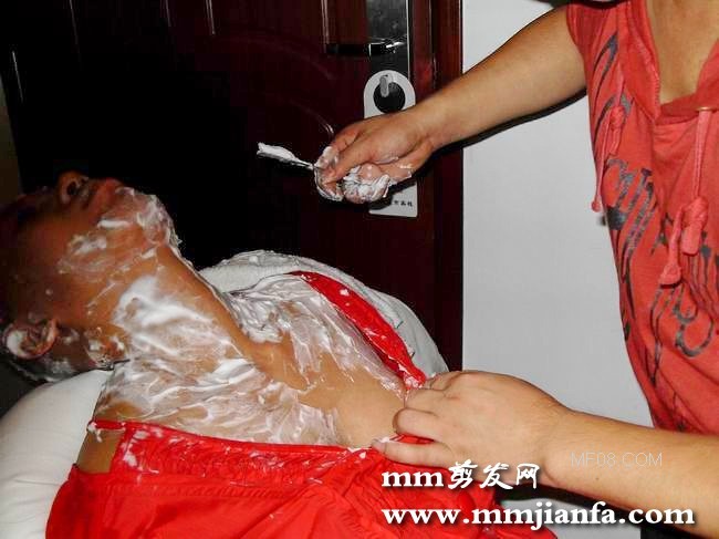 MM躺着享受剃光头