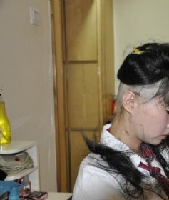 剃空乌黑秀发打工妹后