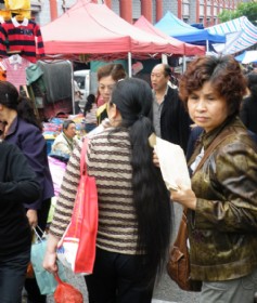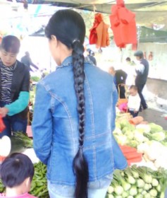 抓拍买菜的长辫子