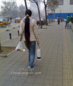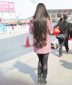 孝感街头拍到超长发女