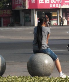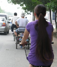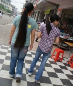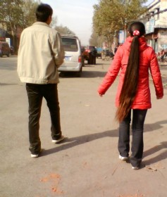 孝感街头的超长发妹