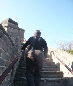 爬长城的长辫女