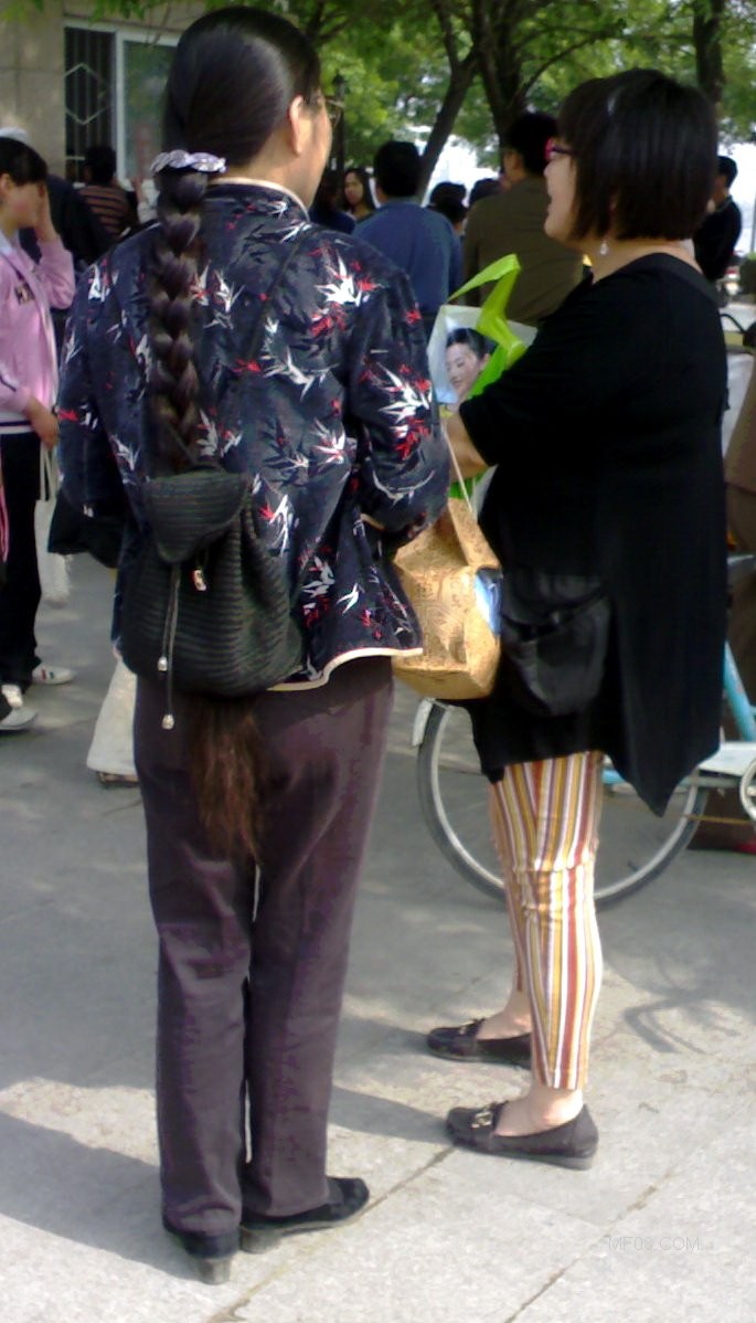抓拍路边的长辫子女