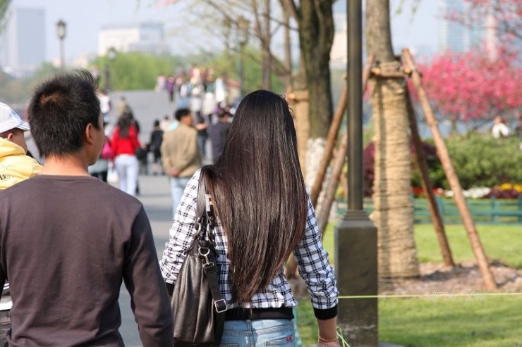西湖边抓拍的长发
