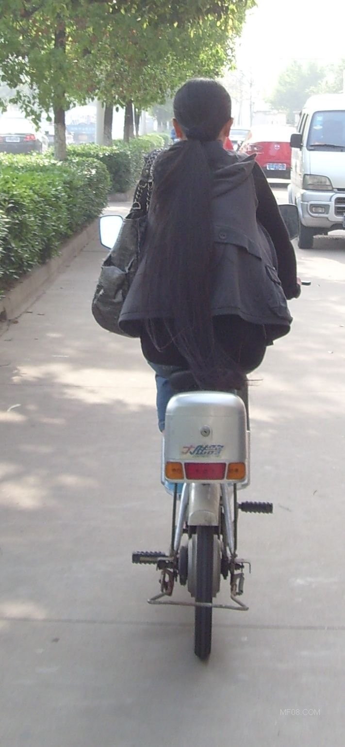 追拍骑车的长发女