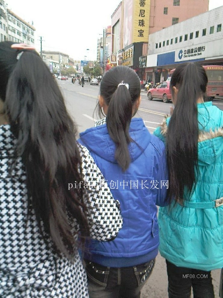 抓拍的辫子与马尾
