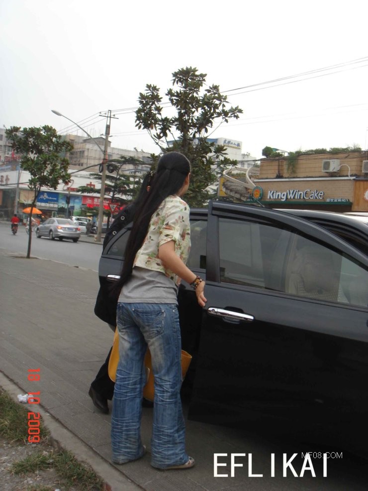 偶遇顺直黑亮长披发美女