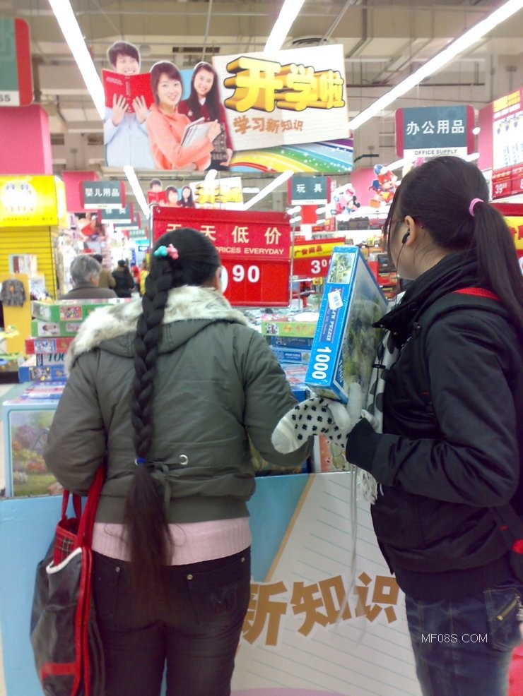 抓拍商场内的辫子女