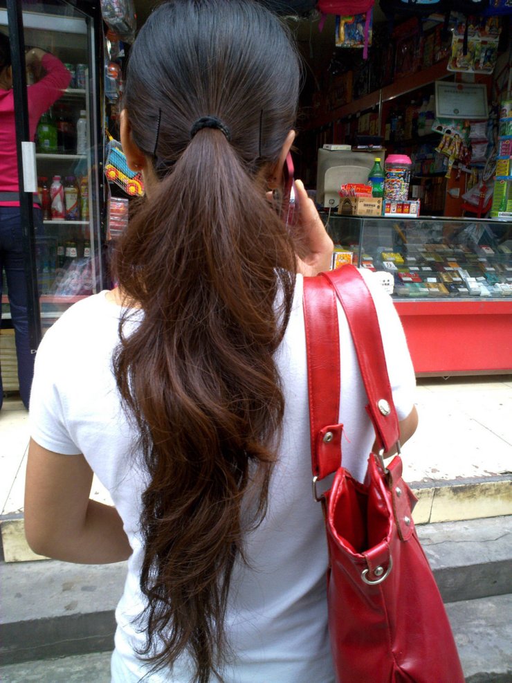 孝感街头的超长发妹