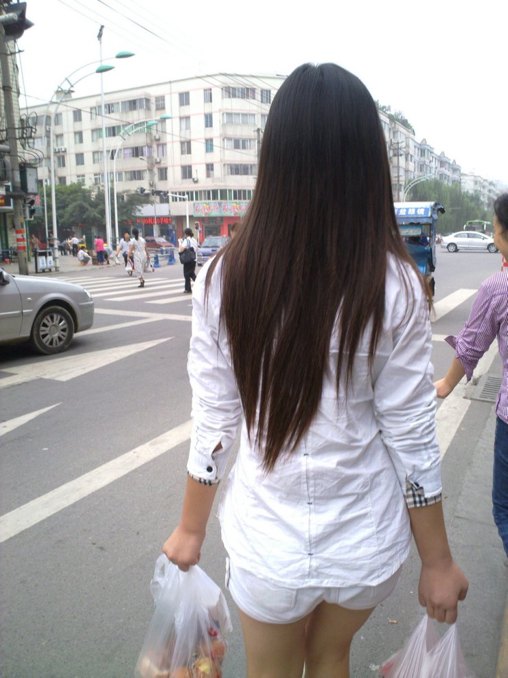 孝感街头的超长发妹