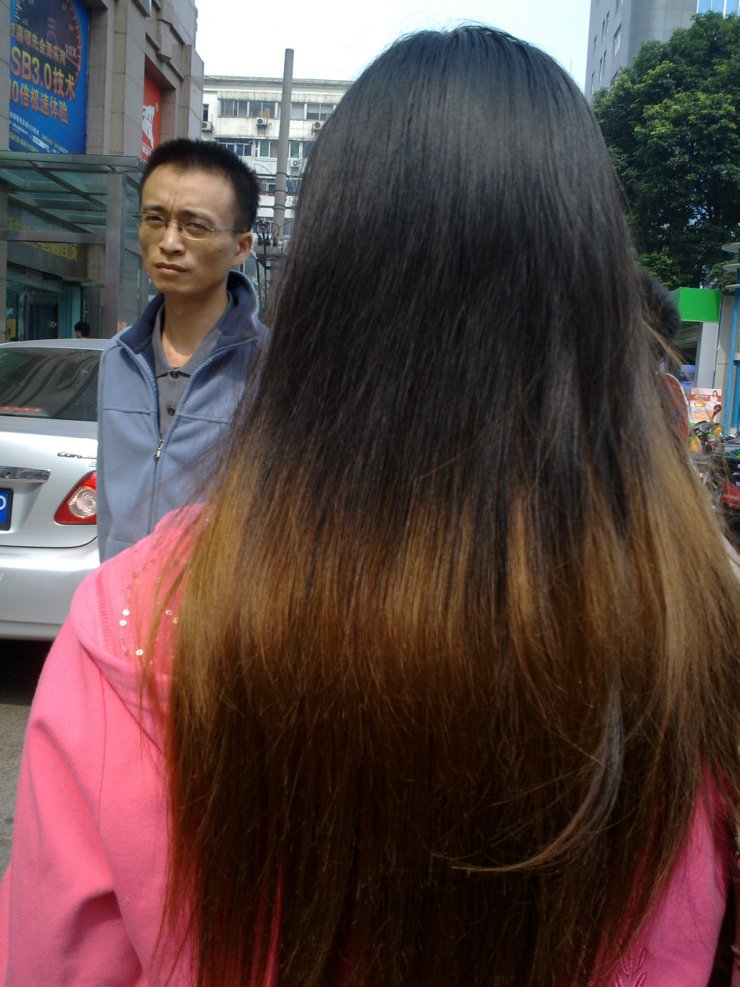 孝感街头的超长发妹