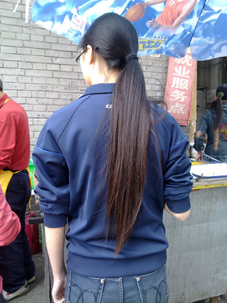 孝感街头的超长发妹