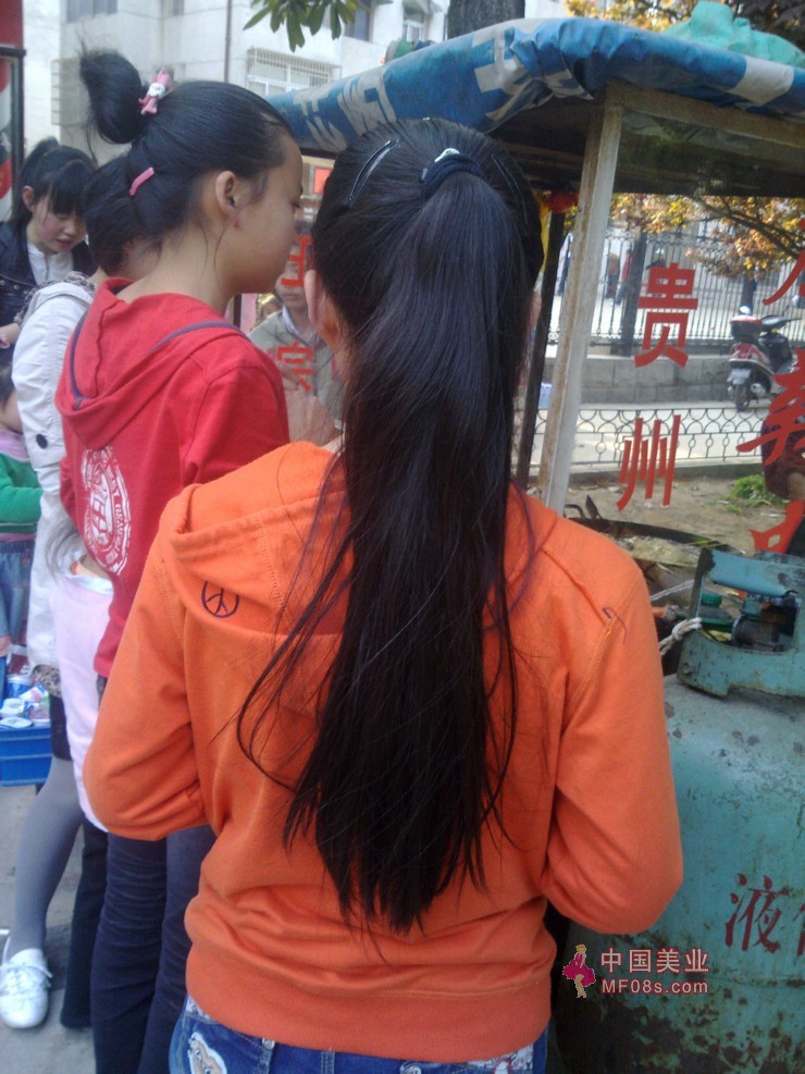 抓拍齐腰长发妹