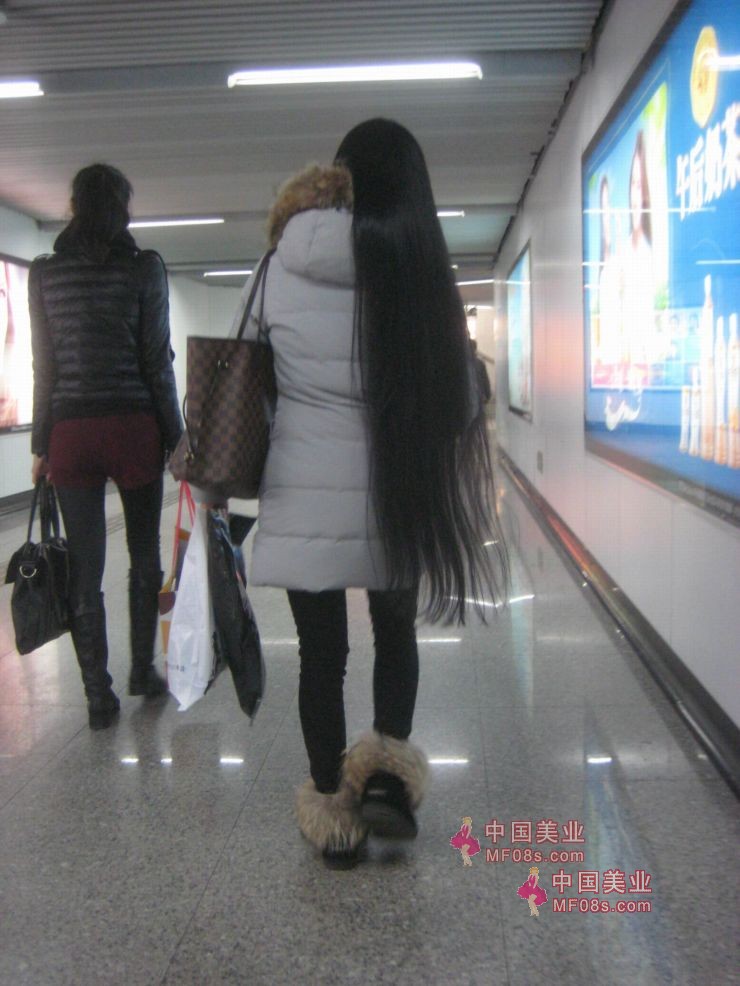 上海地铁站跟拍长发女
